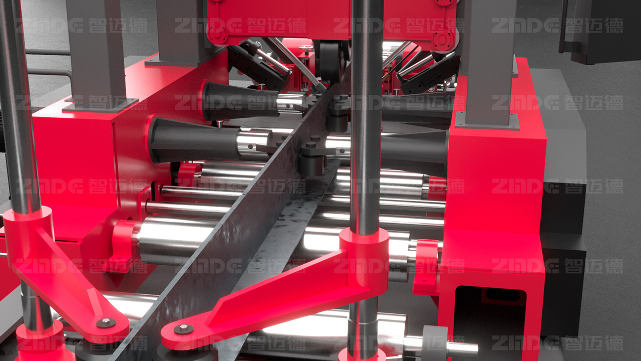 智邁德是“組焊矯一體機”概念的首創(chuàng)者,其研發(fā)的組焊矯一體機,獲得26項專利,在鋼結構行業(yè)的轉型升級過程中,受到了廣泛的歡迎。傳統(tǒng)的鋼結構加工過程,組立、焊接、矯正三道關鍵的工序由不同的設備完成,對人工的依賴程度高,導致焊接與矯正的精度參差不齊,并且設備分散在不同的區(qū)域,工件反復轉運,浪費了大量的人力、物力和時間。而與傳統(tǒng)的加工模式不同,組焊矯一體機創(chuàng)新性地將組立、焊接、矯正三道工序集成在一臺設備上,通過精密、集成的設計和智能化控制系統(tǒng),實現(xiàn)整個過程的自動化、智能化生產。設備可自動對中,無需點焊,腹板18mm以下免坡口焊接,采用熱焊熱矯工藝,從頭焊到尾,在提高生產效率的同時,有效提升了鋼構件的產品品質。